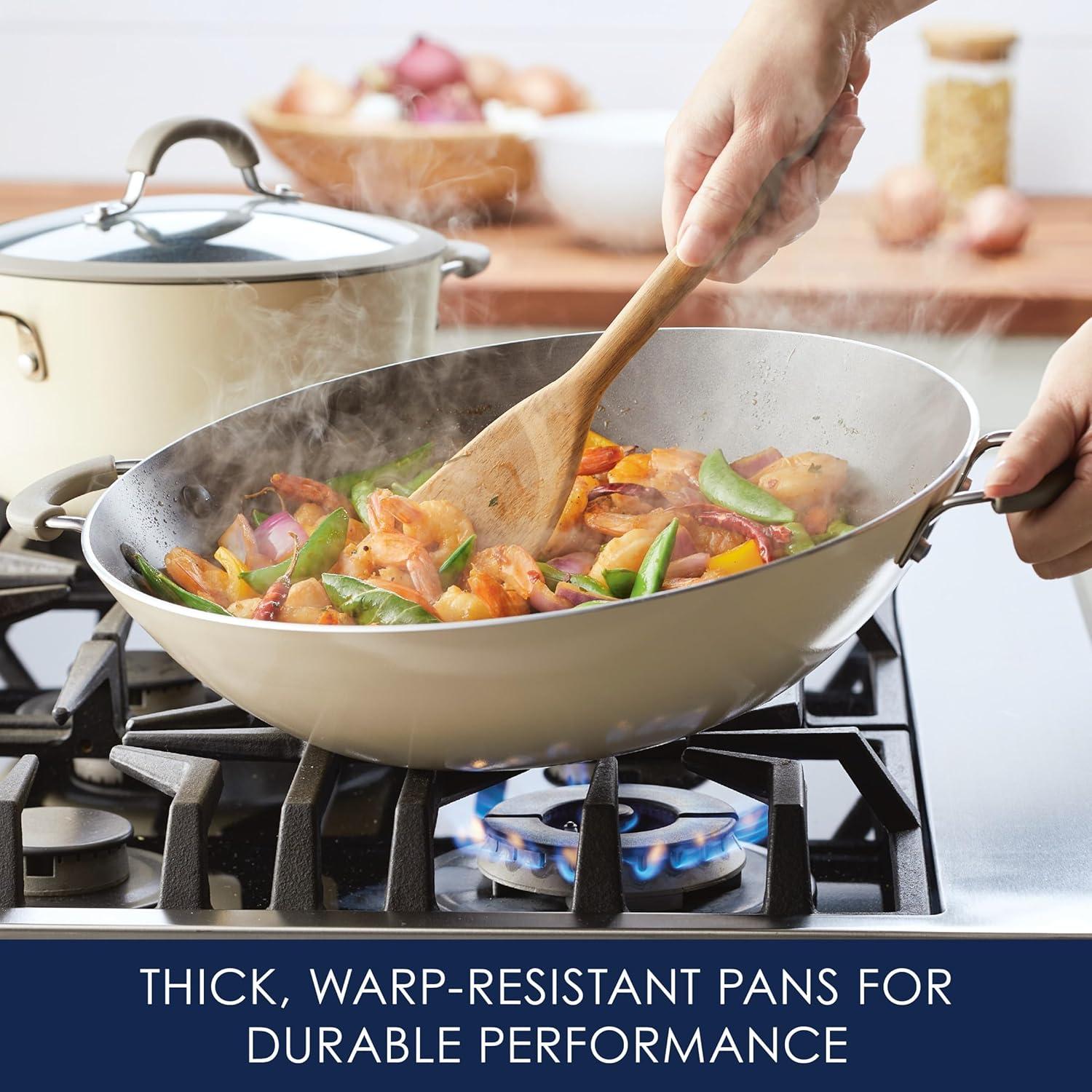 Rachael Ray Cook + Create Nonstick Wok, 14 Inch Stir-Fry Pan – Agave Blue(Almond)