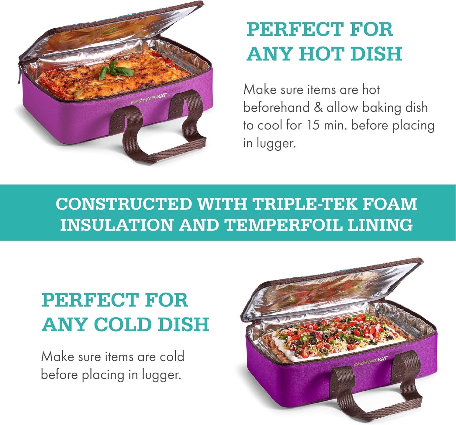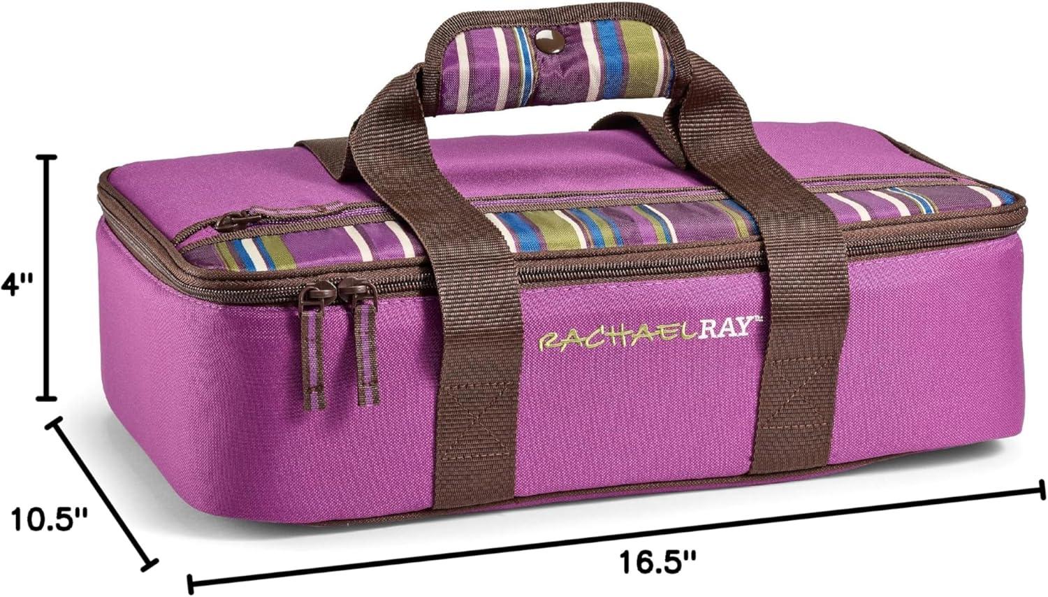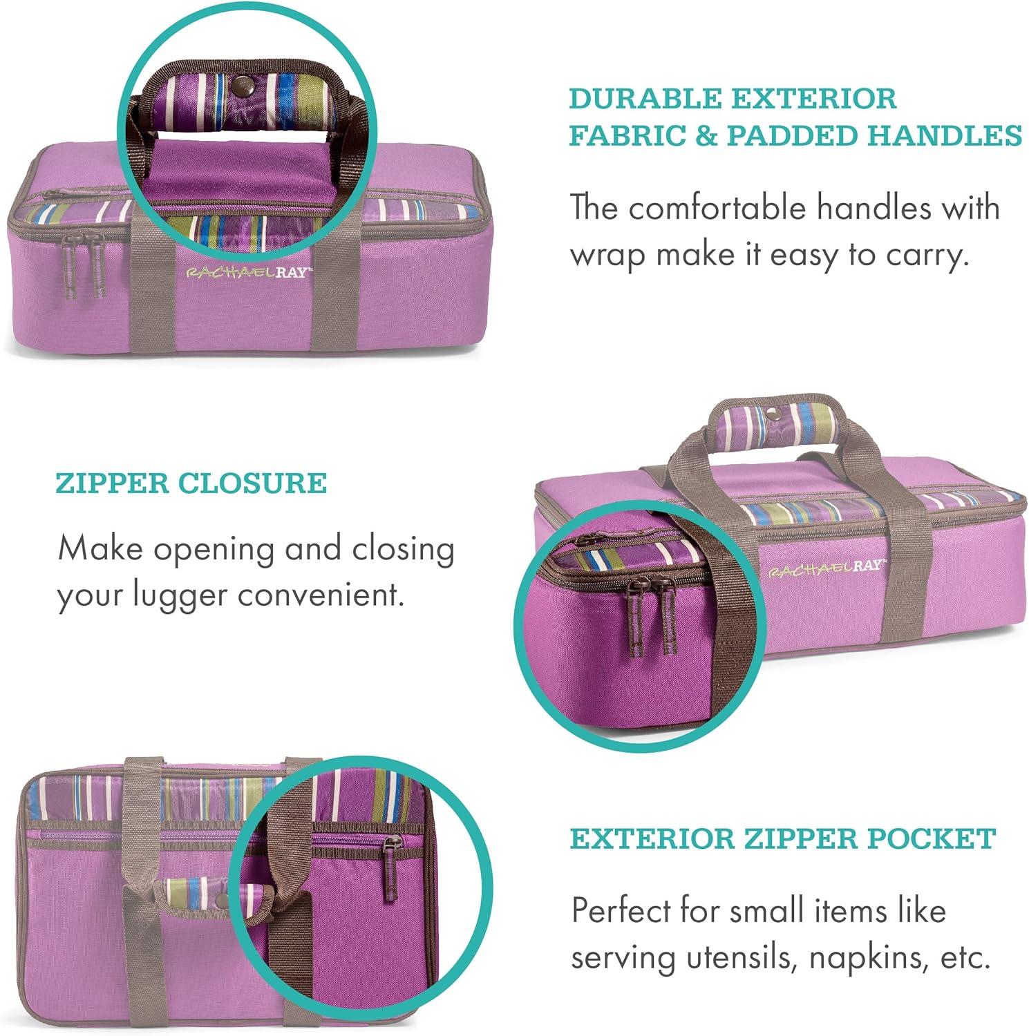 Whether you’re headed to a socially distant party, or just want to escape the house for a picnic, this insulated meal carrier is great for transporting your favorite lasagna, casserole, signature dish or dessert to parties, picnics, cookouts and more! This Rachael Ray Lasagna Lugger measures 16.5” x 10.5” x 4”and fits most 9” x 13”/22.8 x 33 cm casserole & baking dishes (dishes not included). The comfortable handles with wrap make it easy to carry while the exterior zippered pocket is perfect for small items like serving utensils, napkins, etc. Constructed with Triple-Tek foam insulation and Temperfoil lining, this dish carrier has exceptional heat and cold retention. Make sure items are hot or cold beforehand and allow baking dish to cool for 15 minutes before placing in lugger. Additionally, the interior lining of this meal carrier protects against messy leaks or drips and easily wipes clean. Simply spot clean interior or exterior with a wet cloth, cool water and mild soap then let it air dry. Proudly designed in the USA by women, for women, Fit + Fresh is dedicated to supporting your active and healthy lifestyle. We get it. Some days you eat leafy greens and rock it at the gym. Other days you can’t resist a decadent donut and live in yoga pants. We know firsthand that the key to living your best life is creating a colorful balance and we’re here with a line of accessories to help you do just that.