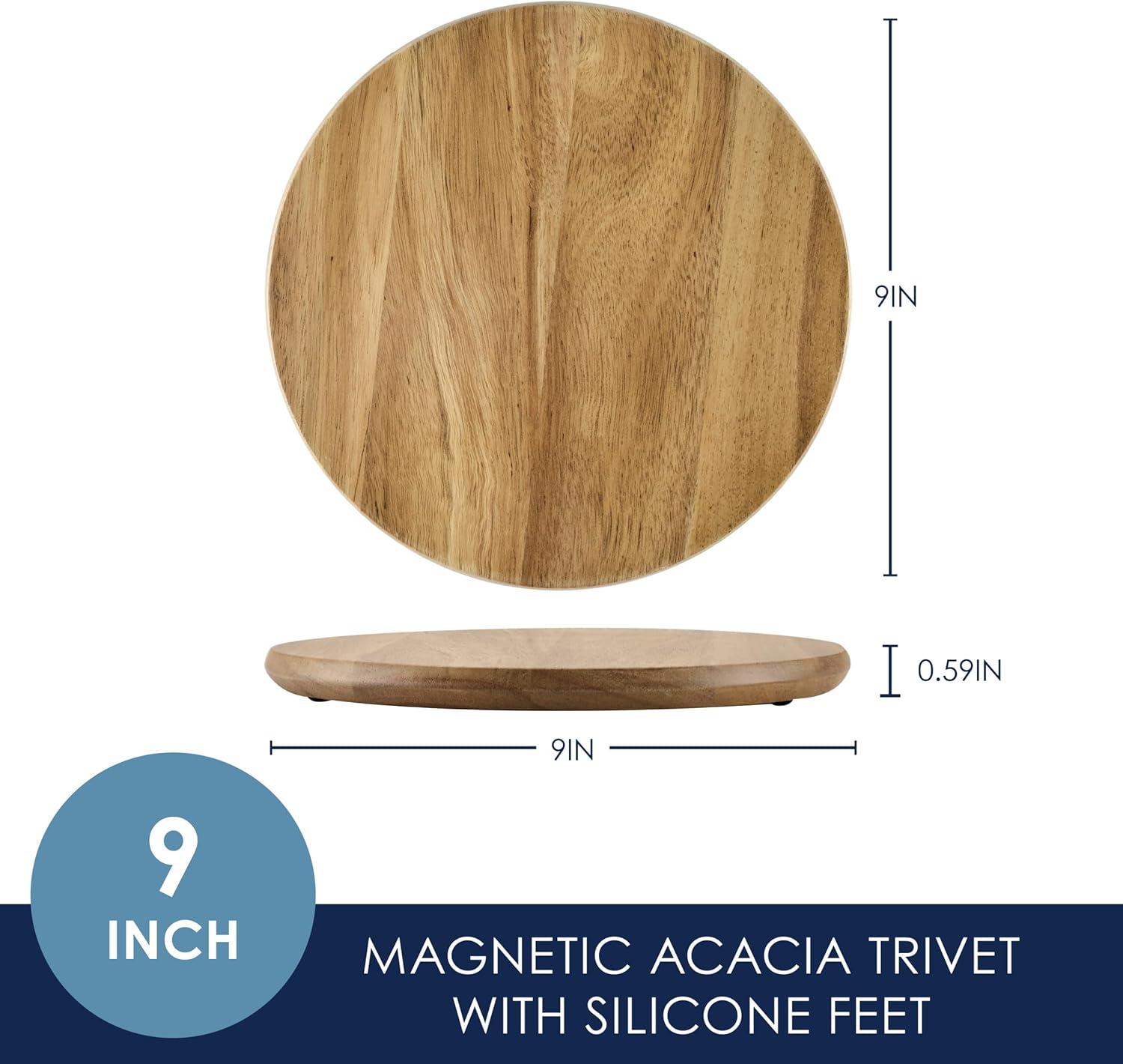 Rachael Ray Pantryware Magnetic Acacia Trivet with Silicone Feet, 9 Inch – Brown